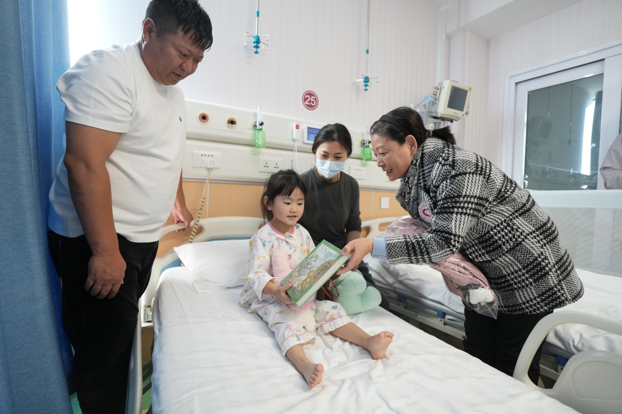 彦玲为先心病患儿送来童书和冬衣,并叮嘱家长帮助孩子耐心恢复。2018年至今,彦玲作为北京药学会秘书长多次参与“同心·共铸中国心”公益筛查和救治项目,此后更是为项目患儿救助出资出力,在整合专家资源、推进项目落地过程中做了大量工作,包括根据当地流行病、多发病情况,组织相应的药学专家参与具体服务指导,到当地交流分享特殊药品管理经验。此外,还通过北京药学会为当地医药工作者提供到北京交流学习的机会等。
